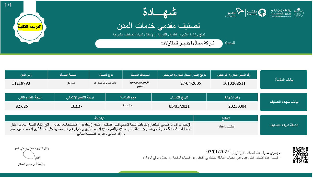 2nd-degree rank by MOMRAH, which indicates meeting technical, financial, administrative, and executive standards to provide Services in the Kingdom’s cities.